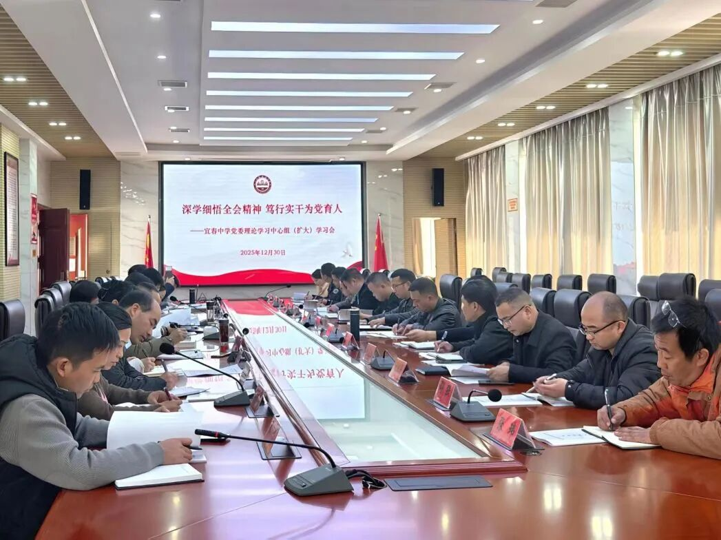 12月30日下午,宜春中学党委理论学习中心组(扩大)学习会召开,深入学习贯彻习近平新时代中国特色社会主义思想和党的二十届四中全会精神,牢牢把握“为党育人、为国育才”初心使命,凝聚办学治校思想共识与行动合力。市教体局党委委员、副局长饶时红列席指导,校党委书记何锋主持会议并小结讲话。